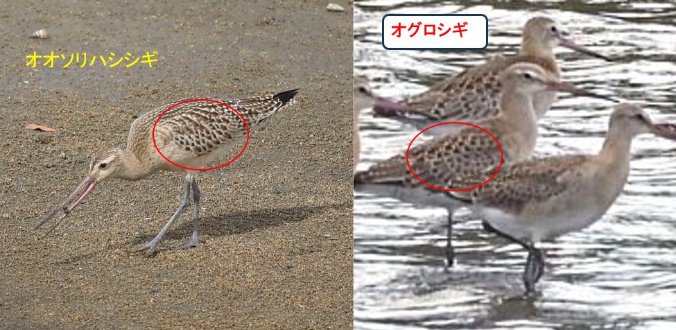 オグロシギとオオソリハシシギの相違 嘴が反っているか撮影角度によって微妙? 下のように羽の形が違います ![]() |